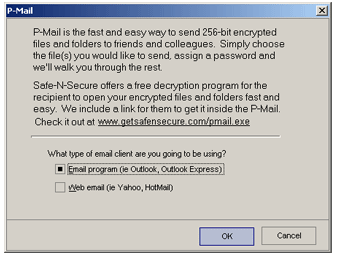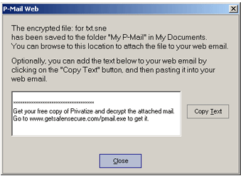 You then are presented with the need information to send you web-based P-Mail. Your encrypted file is saved in My Documents | My P-Mail.