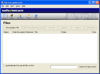The main feature of Safe-n-Secure File Encryption is the encrypting and managing of files. The Files area is where you manage this. You can access this area several ways: