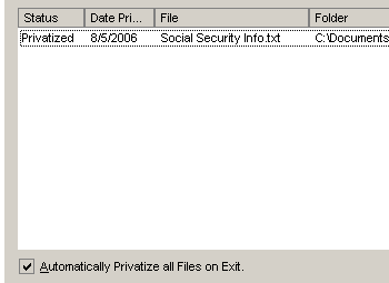 This is where you monitor your privatized files. This window features a file's: